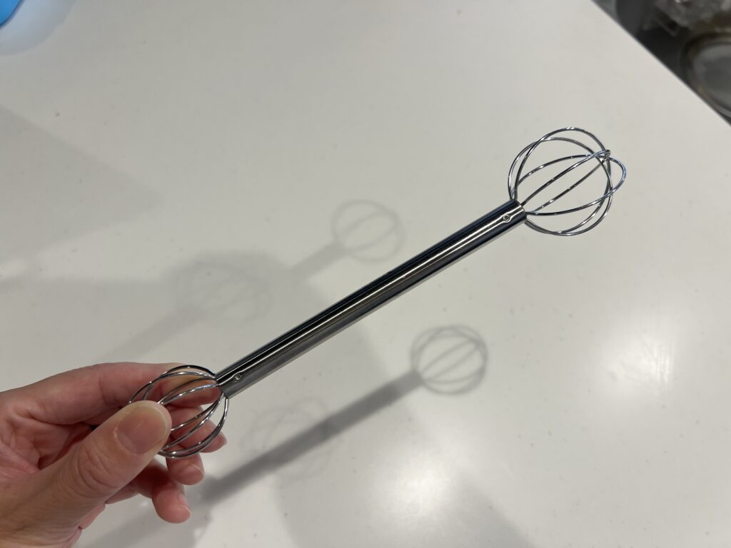 お味噌汁以外にも泡立て器としても使えるので、ちょっと卵をといたりお好み焼きやホットケーキを作る時もこれで混ぜちゃいます。