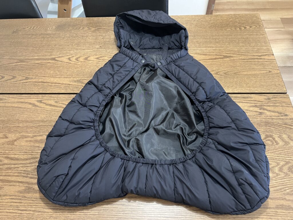 抱っこ紐で使う際、顔まわりが当たって「白っぽくテカる」のを防ぐためによだれカバーを使っています。